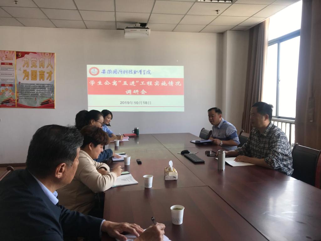 为了深入贯彻落实立德树人根本任务,让主题教育取得实实在在的成效,根据《beat365唯一官方网站“不忘初心、牢记使命”主题教育专题调研工作方案》文件要求,10月18日下午,学生处在秉心楼1012会议室召开学生公寓“五进”工程实施情况调研座谈会,着力解决有关学生切实利益问题。