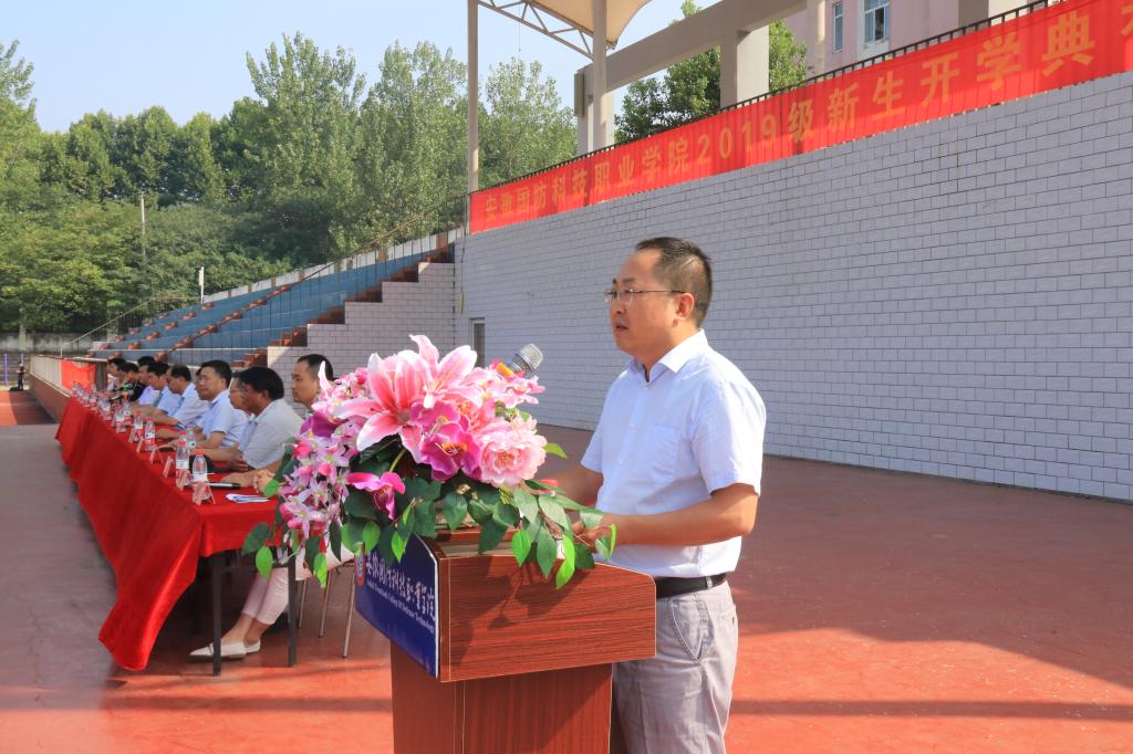 9月10日上午,beat365唯一官方网站在运动场隆重举行2019级新生开学典礼暨军训动员大会。学校领导余嗣元、李麟书、冯伦久、丁守宝及相关职能部门负责人、各二级学院领导出席大会,2019级全体新生、新生班级辅导员、班主任参加了大会。大会由副校长丁守宝主持。