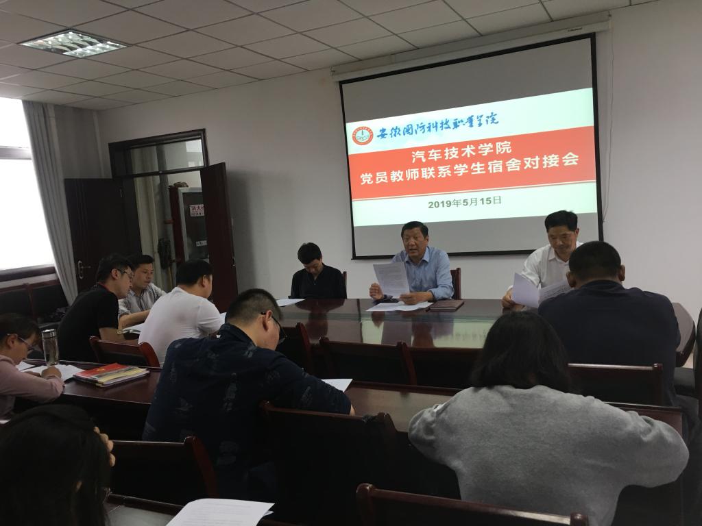 5月15日下午,汽车技术学院党员教师联系学生宿舍对接会在汽车技术学院会议室成功召开。直属第四党支部及汽车技术学院全体党员出席了此次工作会。
