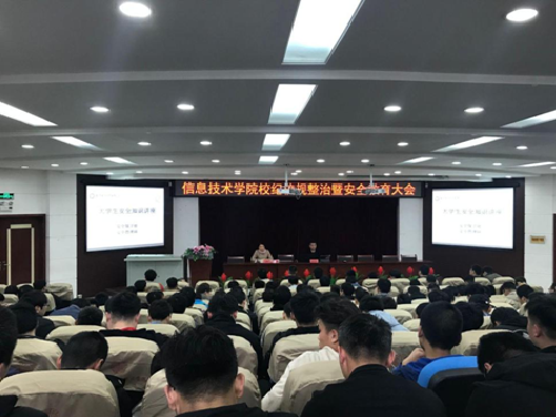 为进一步提高学生的安全防范意识,提高自我保护能力,构建文明、和谐、平安、稳定的校园环境。4月10日下午,信息技术学院邀请校安全保卫处杨振亚科长在图书馆报告厅举办了一场针对大学生的安全知识讲座。信息技术学院2017、2018级全体男生参加讲座。