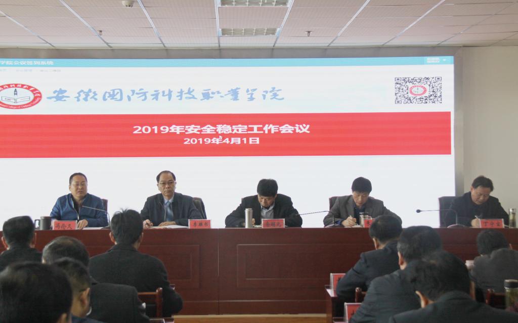 4月1日上午,beat3652019年度安全稳定工作会议在综合楼12楼会议室召开,全面总结2018年安全稳定工作开展情况,部署2019年安全稳定工作。学校党委书记余嗣元,校长李麟书,纪委书记朱德明,副校长冯伦久、丁守宝出席会议,学校中层以上干部参加了会议。会议由副校长冯伦久主持。