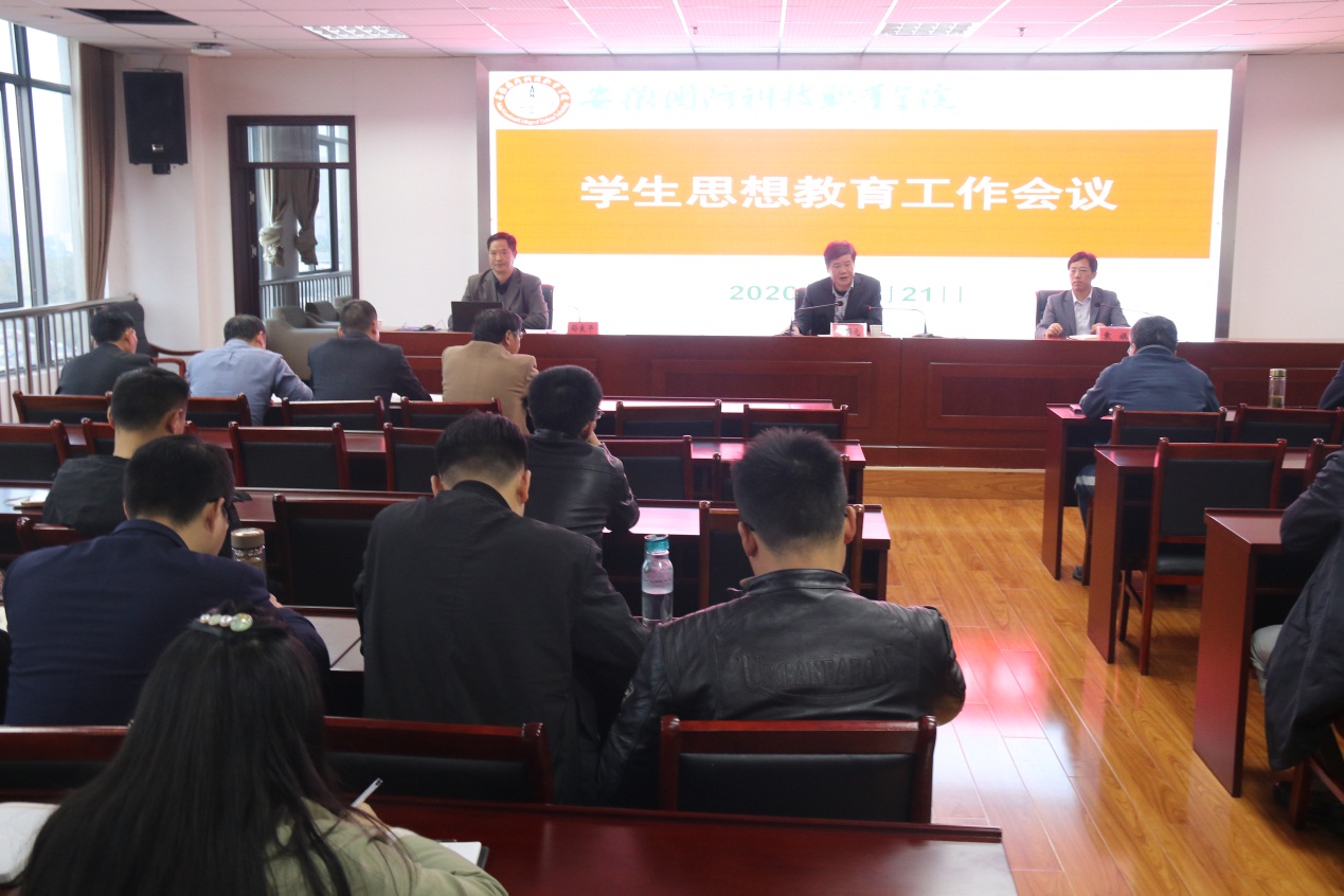 10月21日,beat365在秉心楼12楼会议室召开学生思想教育工作会议。校党委书记余嗣元出席会议并作重要讲话。校党委委员、宣传部部长、思政部主任袁旗主持会议。学生处(安全保卫处)、校团委全体工作人员,各二级学院党总支书记、党总支副书记、团总支书记以及全体辅导员、班主任,基础部、思政部心理健康中心部分工作人员参加了此次会议。