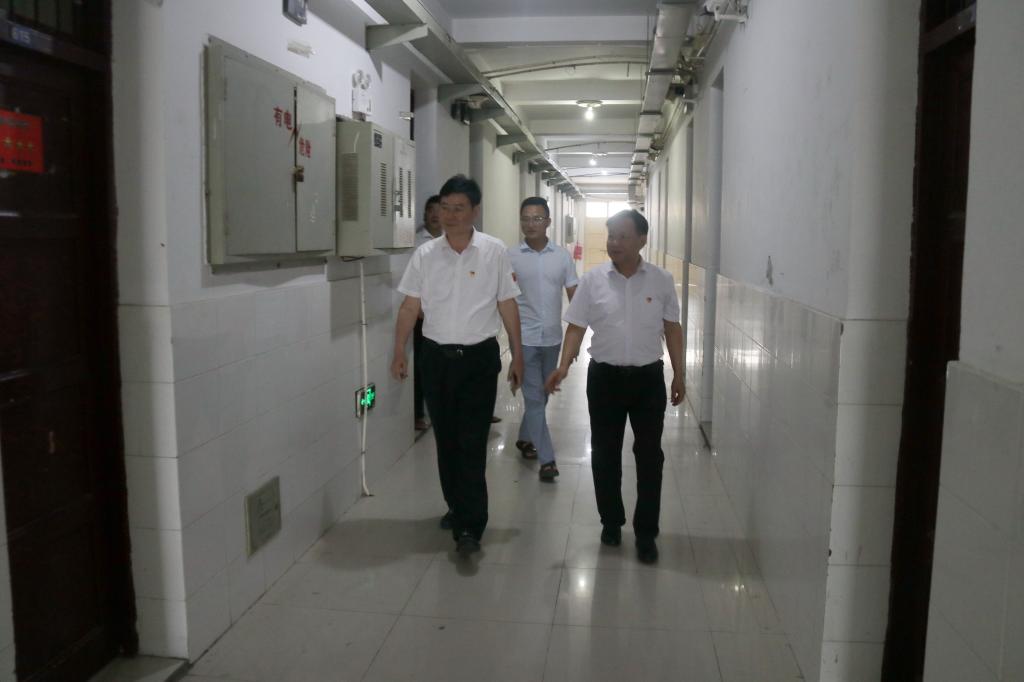 校党委书记余嗣元(左一)带队深入学生宿舍走访