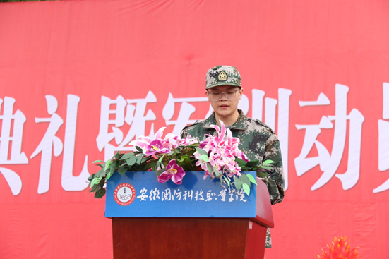 教官代表杨兆祥、新生班主任代表孙洋洋、新生代表徐行建依次发言。
