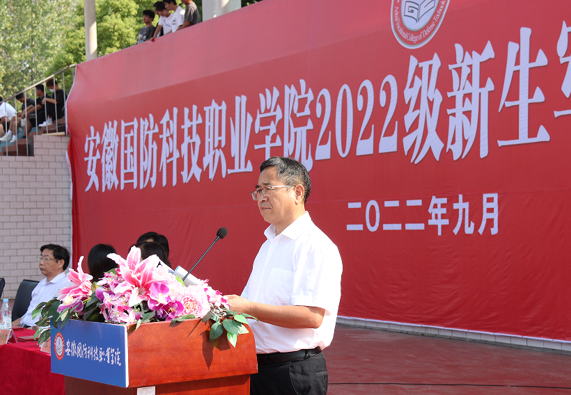 大会伊始,李存鹏代表学校向出席大会的各位领导表示热烈的欢迎和衷心的感谢,向相聚云端观看新生军训闭幕式暨表彰大会直播的社会各界人士及新生家长们致以亲切的问候。
