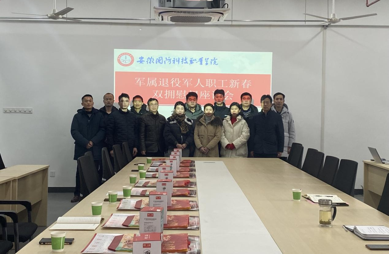 为深入学习贯彻党的二十大精神和习近平总书记关于双拥工作的重要指示精神,大力弘扬拥军优属、拥政爱民光荣传统,营造浓厚双拥氛围,1月25日上午,学校在产教融合中心三楼会议室召开2024年春节双拥慰问座谈会。校党委委员、副校长袁旗,人武部部长孙武、现役军属、退役军人教职工参加座谈会。