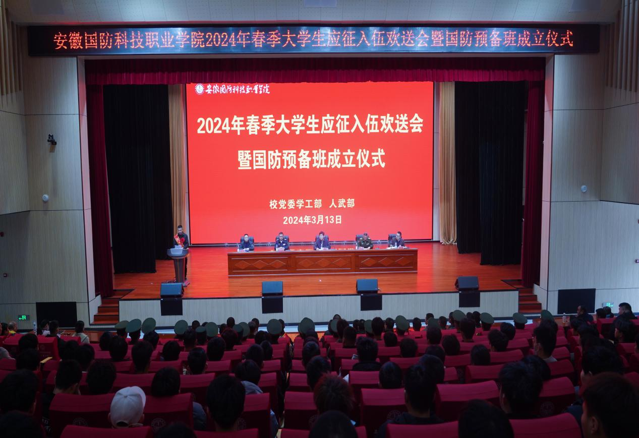 beat365唯一官方网站隆重举办2024年春季大学生应征入伍欢送会暨国防预备班成立仪式
