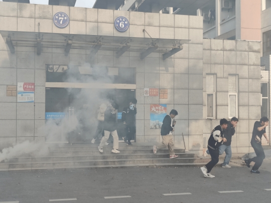本次演练涉及学校秉心楼、知行楼、教学楼、实训楼、图书馆、体育馆、产教融合中心、食堂、健康驿站以及学生1-10号公寓楼在内的共19个重点场所。