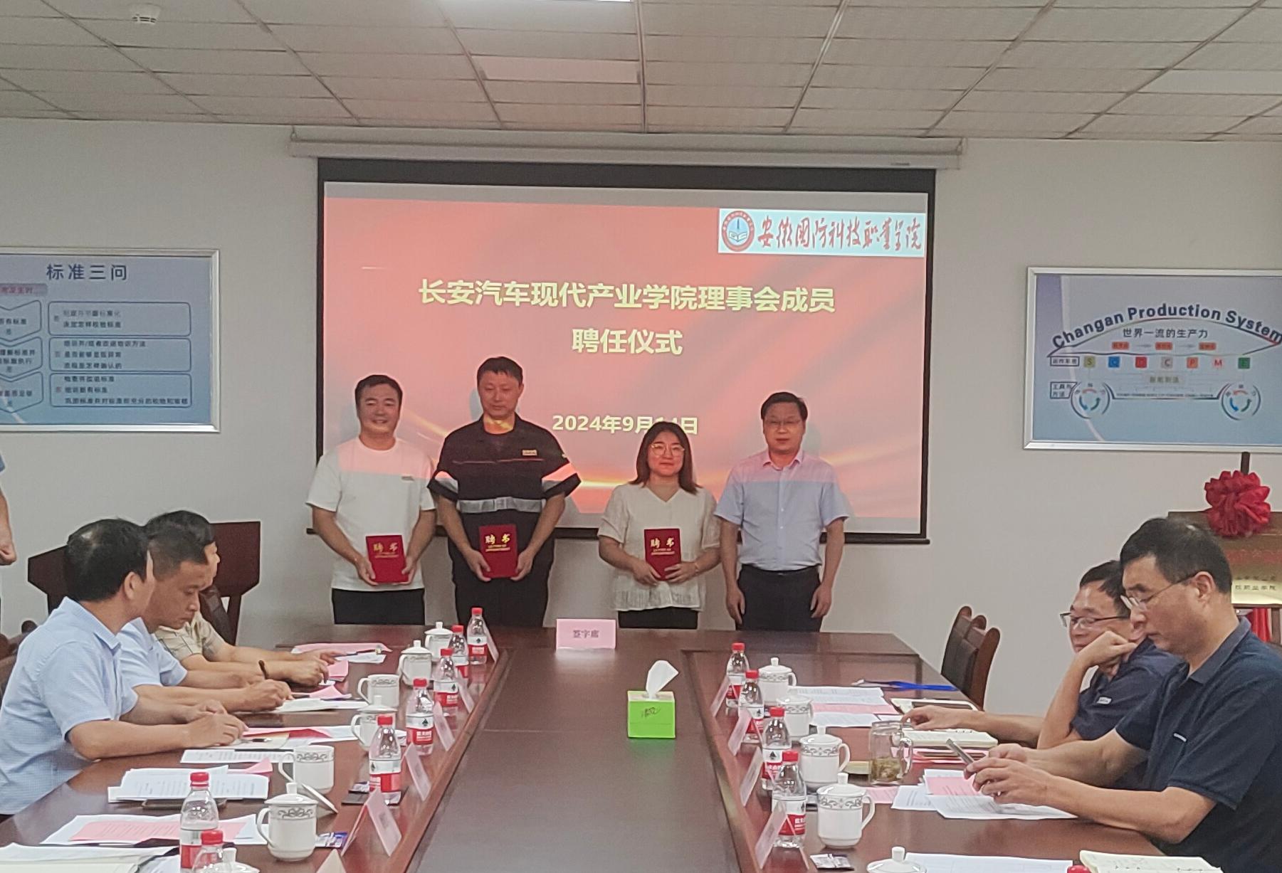 在长安汽车现代产业学院理事会成立大会上,与会人员审议并通过了理事会名单及理事会章程,徐正红当选为第一届理事会理事长。同时大会还为产业学院部分理事成员单位、产业教授、产业导师、企业培训导师颁了聘书,最后与会人员就产业学院2024年工作建设任务进行了充分讨论。