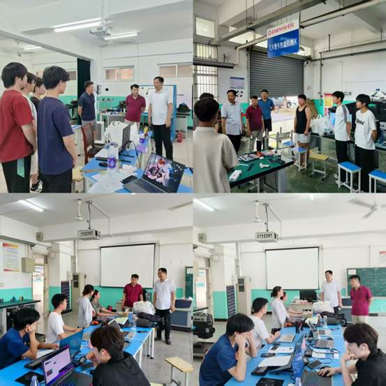 本网讯 2025年7月18日下午,汽车技术学院党政领导一行深入实训场地,看望慰问汽车技术学院备战2025年世界职业院校技能大赛三支参赛队伍师生,为坚守备赛一线的师生送去关怀与鼓励。