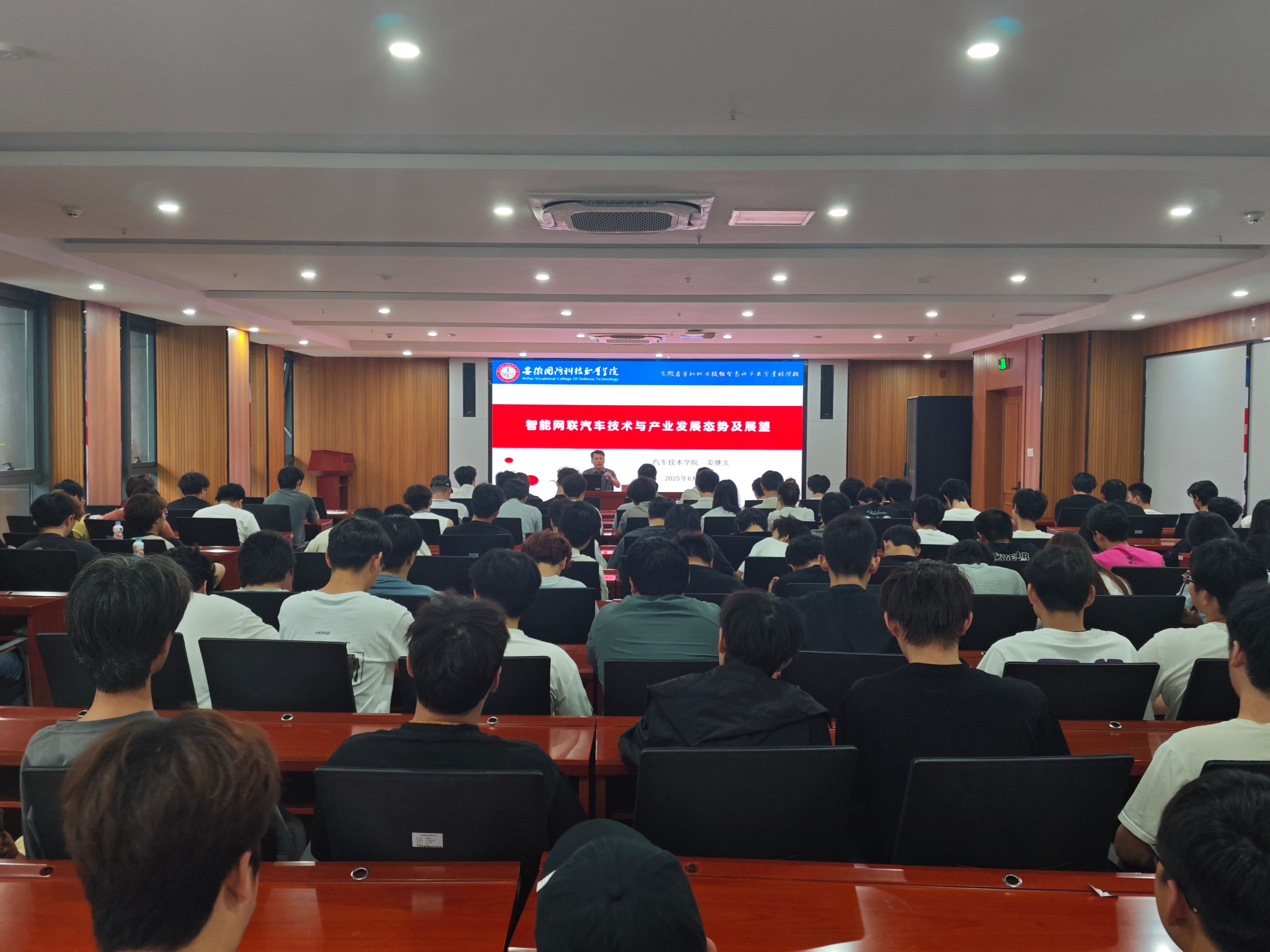 为拓宽师生专业视野、明晰产业技术前沿,助力专业建设与人才培养精准对接行业需求,6月25日下午,汽车技术学院于产教融合第一报告厅成功举办 “智能网联汽车技术与产业发展态势及展望”学术讲座。本次讲座由学院副教授、高级实验师、校级新能源汽车技术专业负责人姜继文担任主讲,学院全体教师及2024级新能源汽车技术、智能网联汽车技术专业学生代表到场聆听,讲座由叶兴姚主持。