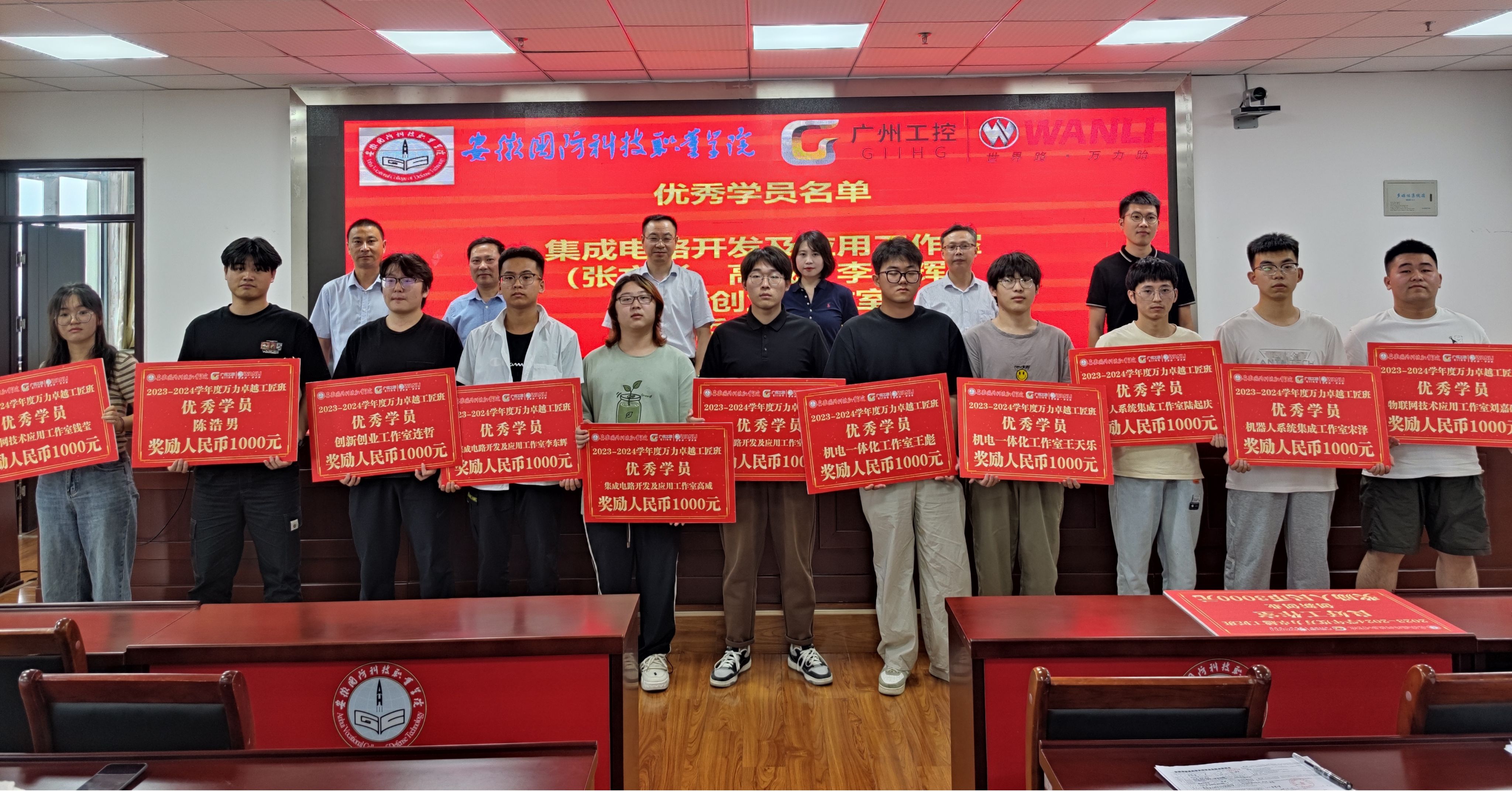 会上,付贤政副校长首先阐明了学校与合肥万力轮胎有限公司校企深度融合组建“万力”卓越工匠班人才培养的目的和意义,对工匠班一年来所取得的培养成果给予肯定,并对今后的培养工作提出期望和要求,继续以工匠班人才培养为引领,推进专业建设和人才培养模式改革,培养出更多的高素质技术技能型人才。接着校企合作办公室主任李中永宣读《关于公布2023-2024学年“万力”卓越工匠班考核结果的通知》文件,参会的校企双方领导为工匠班各工作室及11位优秀学员颁奖。