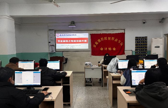 本网讯(学生通讯员 赵兴媛)为了深入贯彻落实党的二十大精神,提高人才培养质量,加强学院“一院一品”建设,创建有影响力、具有长效性、持续性、可行性的品牌项目,通过以赛促学、以赛促练的方式,激发学生学习税务知识兴趣、提高学生税务知识应用能力,培养和提升学生税务业务处理能力、综合素养和创新精神,由城市建设学院举办、会计协会协办的“校级税务技能大赛”于2023年12月6日下午14点在实训楼506开赛,本次比赛由王红林院长、左飞副院长担任巡考,赵之元老师、赵超慧老师担任裁判。