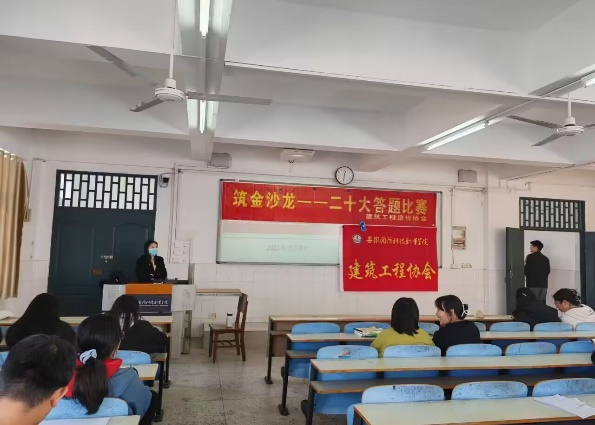 本网讯(学生通讯员 赵文强)为深入学习贯彻习近平新时代中国特色社会主义思想和党的二十大精神,引导大学生争做“有理想、敢担当、能吃苦、肯奋斗”的新时代好青年。城市建设学院建筑工程造价协会于2023年12月8号中午在二教412开展了有关“学习二十大,永远跟党走,奋进新征程”主题活动。活动由会长宋远龙主持,城市建设学院部分同学参加此次答题活动。