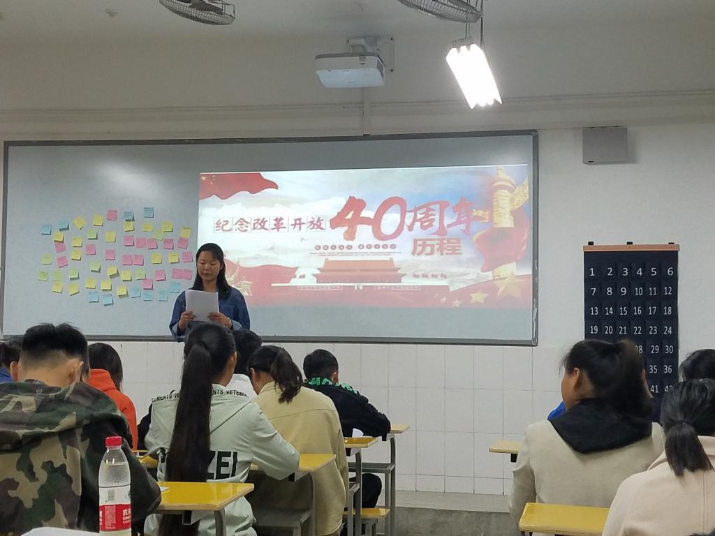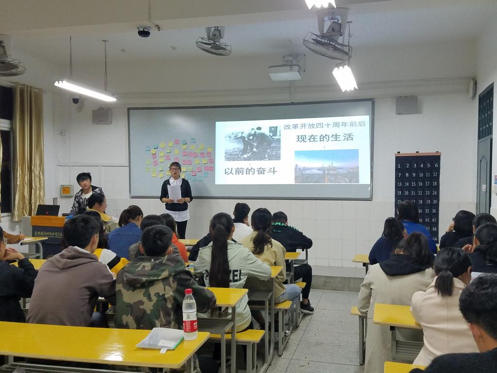 为深入学习宣传贯彻习近平新时代中国特色社会主义思想和党的十九大精神,引导广大团员青年回顾四十年来我国改革开放走过的伟大历程和取得的巨大成就,展示青年蓬勃向上的精神风貌,凝聚起实现伟大中国梦的青春力量。10月21日晚上,城市建设学院18会计1班和18会计信息1班在2二教404教师共同举办“我与改革共成长”主题团日活动。院团总支书记张凤老师、辅导员罗丞筠老师与两个班级60余名学生共同参与了活动。