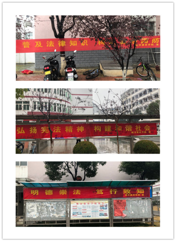 在我院学生宿舍区域(学校8栋、4栋宿舍楼前和城建宣传栏)悬挂大型条幅,推送了一系列法律相关知识,扩大活动的覆盖面,提升法律知识的普及度。