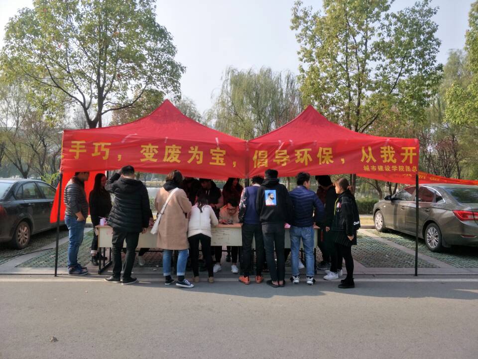 12月 15日,为了增加环保意识,建立“环保校园”,城市建设学院学生会在食堂门口举办“心灵手巧,变废为宝,从我开始”的活动。一点巧思、一份创意、一些实践就能给那些随处可见、平凡无奇的废品赋予新的生命,让学生切身感受到“垃圾是放错地方的资源”。