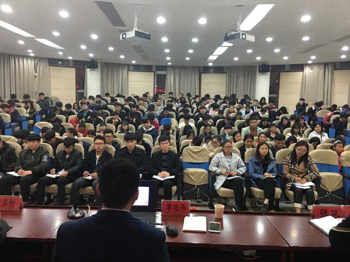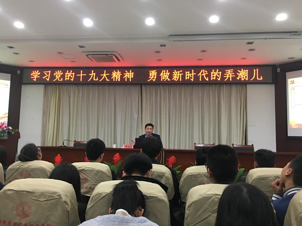 根据中共中央关于认真学习宣传贯彻党的十九大精神和共青团中央关于认真学习宣传贯彻党的十九大精神的要求,城市建设学院在学生干部专题培训中突出党的十九大精神主题,受到广大学生干部的欢迎。11月17日晚上,安徽省委宣传部舆情信息处单兆伟同志为城市建设学院学生干部做了题为《学习党的十九大精神 勇做新时代的弄潮儿》专题报告,党总支副书记叶启衡、辅导员袁野以及全体学生干部参加了报告会,报告会由院团总支书记张凤主持。