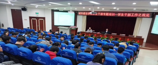 为了进一步加强学生干部队伍的建设,2017年11月1日晚上七点半,我院特邀院党总支副书记叶启衡在图书馆报告厅为学生干部们进行了“学生干部工作之我见”的专题培训。培训由院团总支书记张凤主持,院全体学生干部参加了此次培训。
