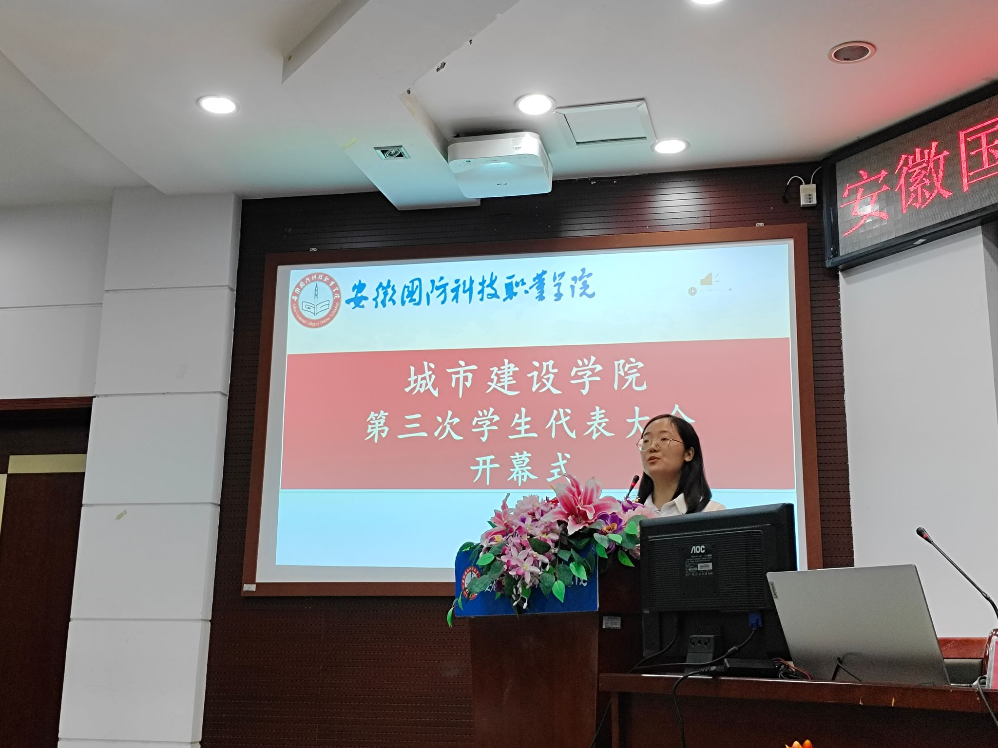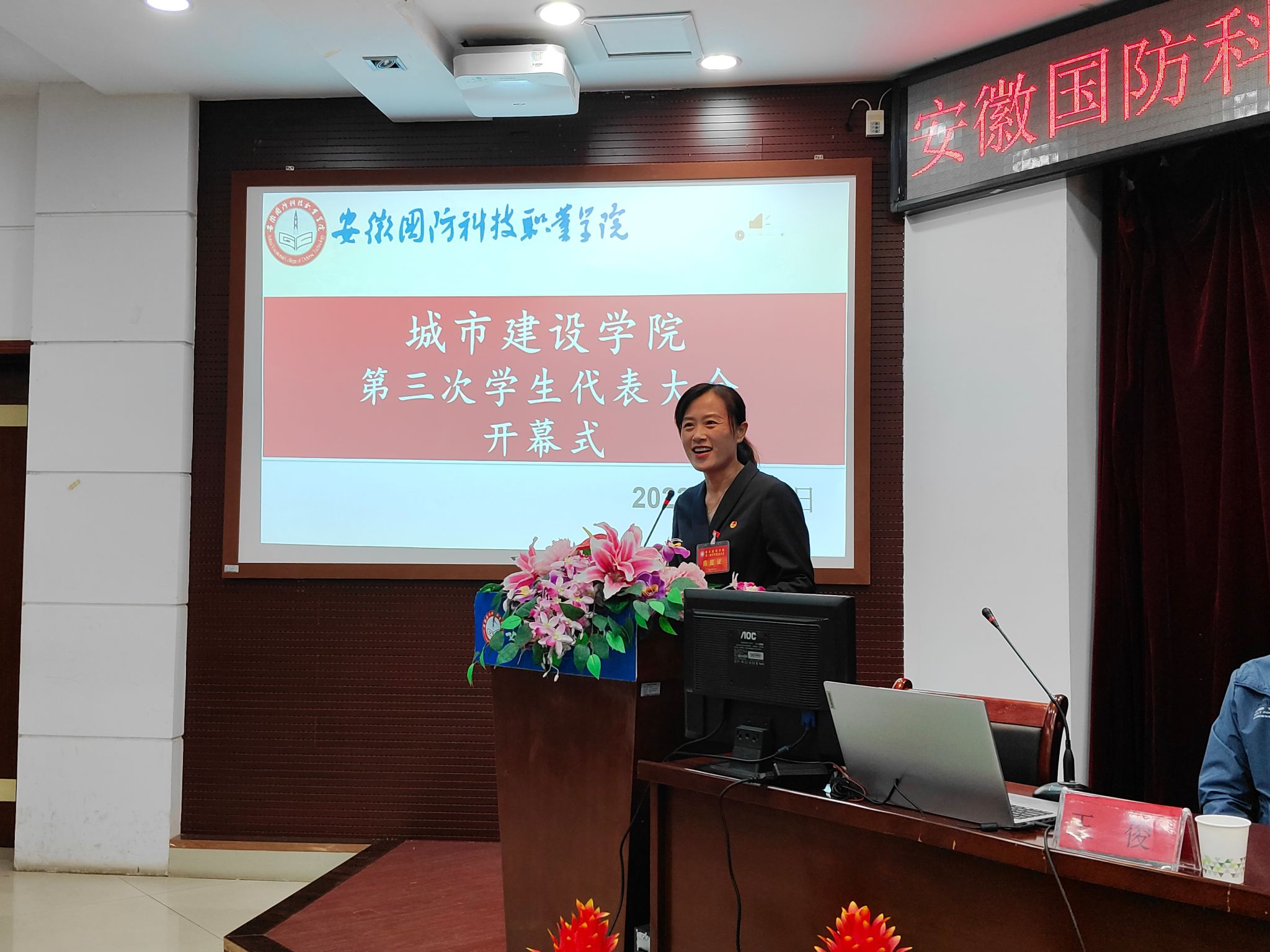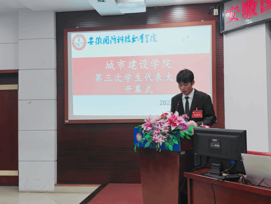 张凤书记代表校团委致开幕贺词,张凤书记首先肯定了近年来城市建设学院学生会工作取得的新成绩,希望同学们坚定信念,把牢方向,做新时代的奋斗者;增长才干,锤炼品格,做初心使命的践行者;认真履职,牢记使命,做服务学生的贴心人。