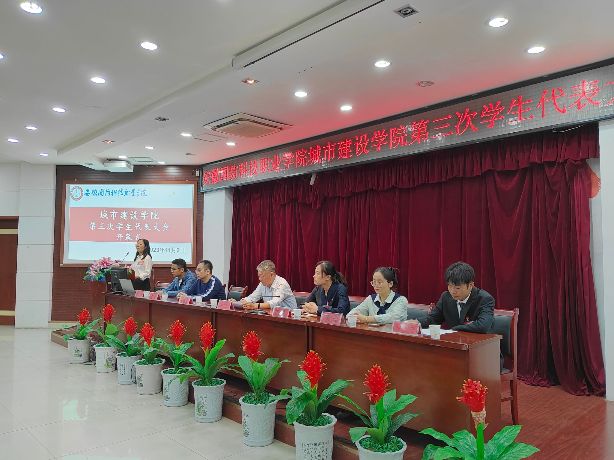 本网讯(城市建设学院 袁野)2023年11月2日,城市建设学院第三次学生代表大会在图书馆报告厅召开。城市建设学院党总支书记张宗江,院长王红林,校团委副书记张凤,城市建设学院副院长左飞,辅导员康垚、王俊以及城市建设学院第二届学生会主席团成员张智慧等出席了本次会议。会议由院团总支书记袁野主持。