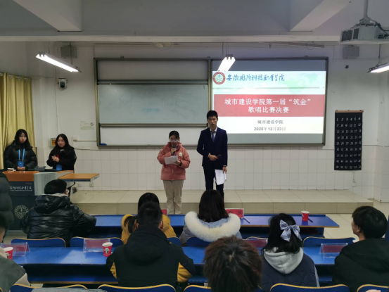 2020年12月23 日,为了繁荣校园文化生活,努力营造积极向上、健康文明的校园文化气氛,为学生提供展示自己才华的舞台,同时为推进学院“一院一品”建设,城市建设学院举行“歌唱青春,展现自我”为主题的歌唱比赛。歌声从这里传递,音符从这里飘扬,青春从这里激荡,梦想从这里起航。