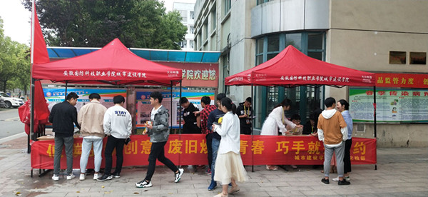 5月5日,为了增强环保意识,宣传环保知识,城市建设学院学生会在食堂门口举办“低碳引领创意,废旧换发青春”变废为宝工艺品大赛,一点巧思、一份创意、一些实践就能给那些随处可见、平凡无奇的废品赋予新的生命,让学生切身感受到“垃圾是放错地方的资源”。