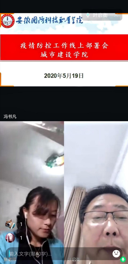为进一步落实落细学校关于疫情防控工作的部署安排,增强学生干部服务与责任意识,切实有效做好学生疫情防控工作。2021年5月19日晚,城市建设学院召开全体学生干部线上工作会议,学院80余名学生干部、学生党员和入党积极分子参加此次会议,学院党总支副书记叶启衡出席会议,会议由团总支书记张凤主持。