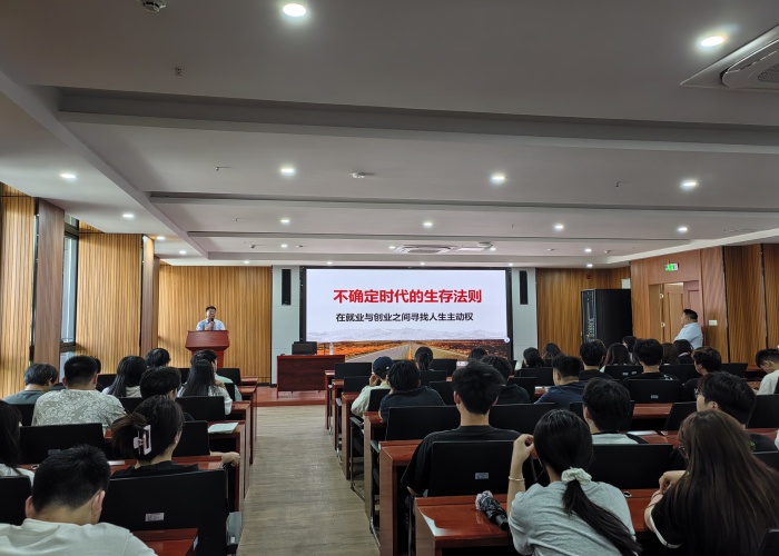 5月7日下午,为认真贯彻落实习近平总书记关于大学生就业创业的指示批示精神,城市建设学院党总支书记张宗江邀请2005届优秀校友丁培培来校,为即将离校实习的2023级学生开展就业创业讲座。丁培培,男,2005届数控技术专业毕业生,曾任职于全顺餐饮集团董事长助理、安徽梦都集团安徽区总经理等,现自主合伙创业合肥爱至堂酒店管理有限公司,具有丰富的就业和创业经历。