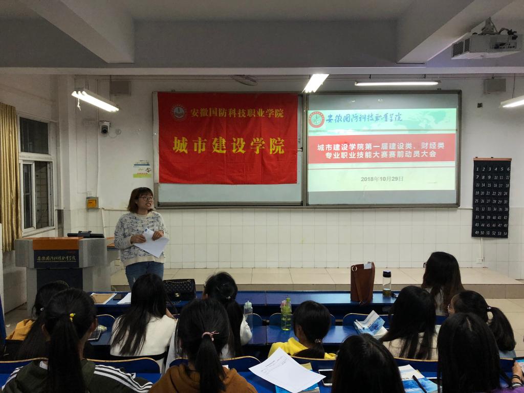 为充分做好2018年beat365唯一官方网站第一届建设类、财经类专业职业技能大赛的备战工作,我院于10月29日晚上5点30分在教2楼105召开职业技能大赛赛前动员大会。 会议由学院团委书记张凤主持,会计协会指导教师赵之元、建筑工程协会指导教师程磊以及我院17、18级学生参加了本次会议。