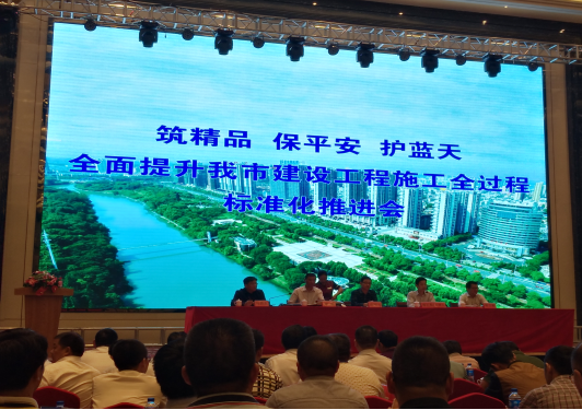 现场观摩会后返回主会场永泰大酒店,通过观看视频短片详细了解振兴·国悦府项目全过程质量标准化工作创建的施工现状。会议上,市住建委主任许明力发表讲话,高度赞扬了振兴·国悦府小区在创建安全质量标准化示范工地取得的成效,并就六安市当前建筑施工安全质量标准化工作形势做了深入分析,对我市各建筑施工企业实施全过程标准化建设的未来表达了殷切的期望。随后安徽振兴房地产集团高地置业董事长马启兵、安徽振兴建设董事长汪勇分别作了发言。