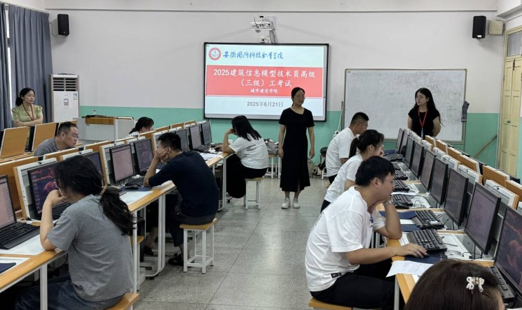本网讯(城市建设学院 赵超慧)为进一步推进落实技能等级评价制度,推进“课证融通”,有效提升学生的职业技能水平和就业竞争力。2025年6月21日,城市建设学院组织完成2025年度建筑信息模型技术员职业技能等级认定工作,本次建筑信息模型技术员职业技能认定等级为高级(三级),共有26人参加考评。学院在考前进行了周密的安排,从考场布置、设备调试到考务人员培训等各个环节都严格把关,确保考试的顺利进行。在考场现场,各项设施准备齐全,考务人员认真负责,为考生营造了良好的考试环境。