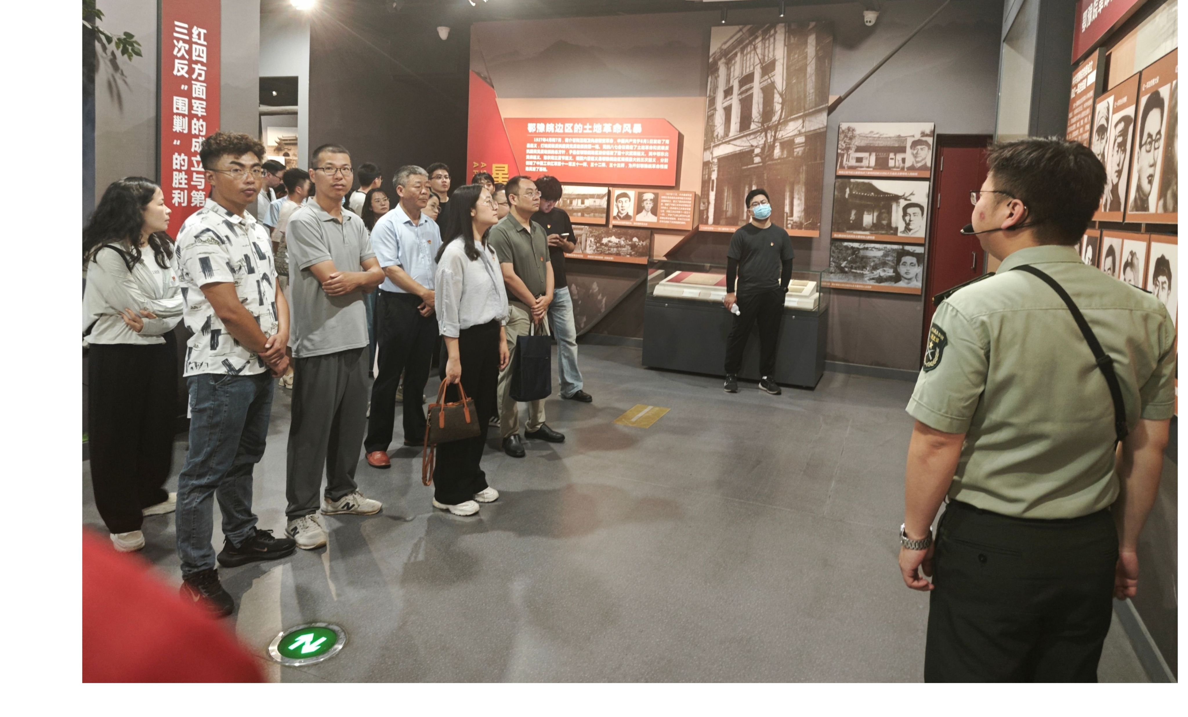 活动开始,全体党员有序进入大别山革命历史纪念馆进行参观学习。馆内丰富的历史文物、详实的文史资料以及逼真的场景复原,生动地展现了大别山地区波澜壮阔的革命斗争史。从早期党组织在大别山的建立,到艰苦卓绝的土地革命战争、抗日战争和解放战争,党员们仿佛穿越时空,亲眼目睹了革命先烈们为了民族独立和人民解放,不畏强敌、前赴后继、英勇奋斗的壮丽画卷。大家认真聆听讲解员的细致解说,不时驻足凝视,深入了解每一段历史故事背后的深刻意义,深刻感悟革命先辈们坚定的理想信念、无私的奉献精神和顽强的斗争意志。