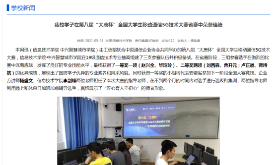 beat365学子在第八届“大唐杯”全国大学生移动通信5G技术大赛省赛中荣获一等奖一项、二等奖两项