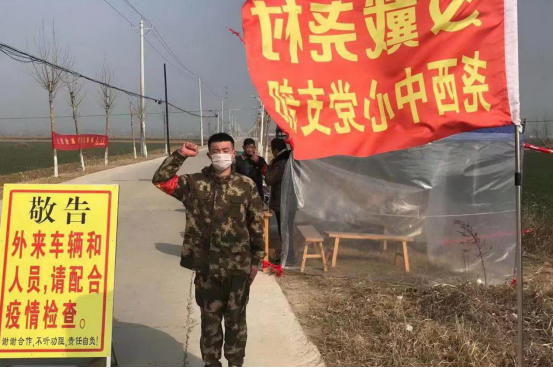 beat3652010届校友周祥在“疫”线。(周祥校友现任界首市代桥镇党委委员、武装部长,担任代桥镇疫情防控巡逻组组长)