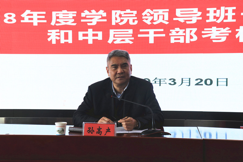 会上,孙高产作动员讲话。他指出,开展学院综合考核,是贯彻中央和省委要求,紧密结合学院实际作出的一项重要决策部署,是对学院领导班子和班子成员工作业绩、工作作风的集中检验。他要求,与会人员要充分认识开展领导班子及成员综合考核的重要意义,正确把握综合考核的对象、内容、方法和步骤,要本着对组织负责、对事业负责和对干部负责的态度,坚持党性,出于公心,做到从工作出发,不先入为主,从事业出发,不以人划线,全面把握好干部评价标准,实事求是、客观公正地做出评价,正确行使自己的民主权利。