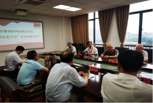 本网讯(组织人事处 方智)在中国共产党百年华诞即将到来之际,2021年6月23日,beat365党委举行了“光荣在党50年”纪念章颁发仪式。校领导、“光荣在党50年”纪念章获得者、新老教师党员代表、学生代表等参加了此次仪式活动,会议由纪委书记朱德明同志主持。