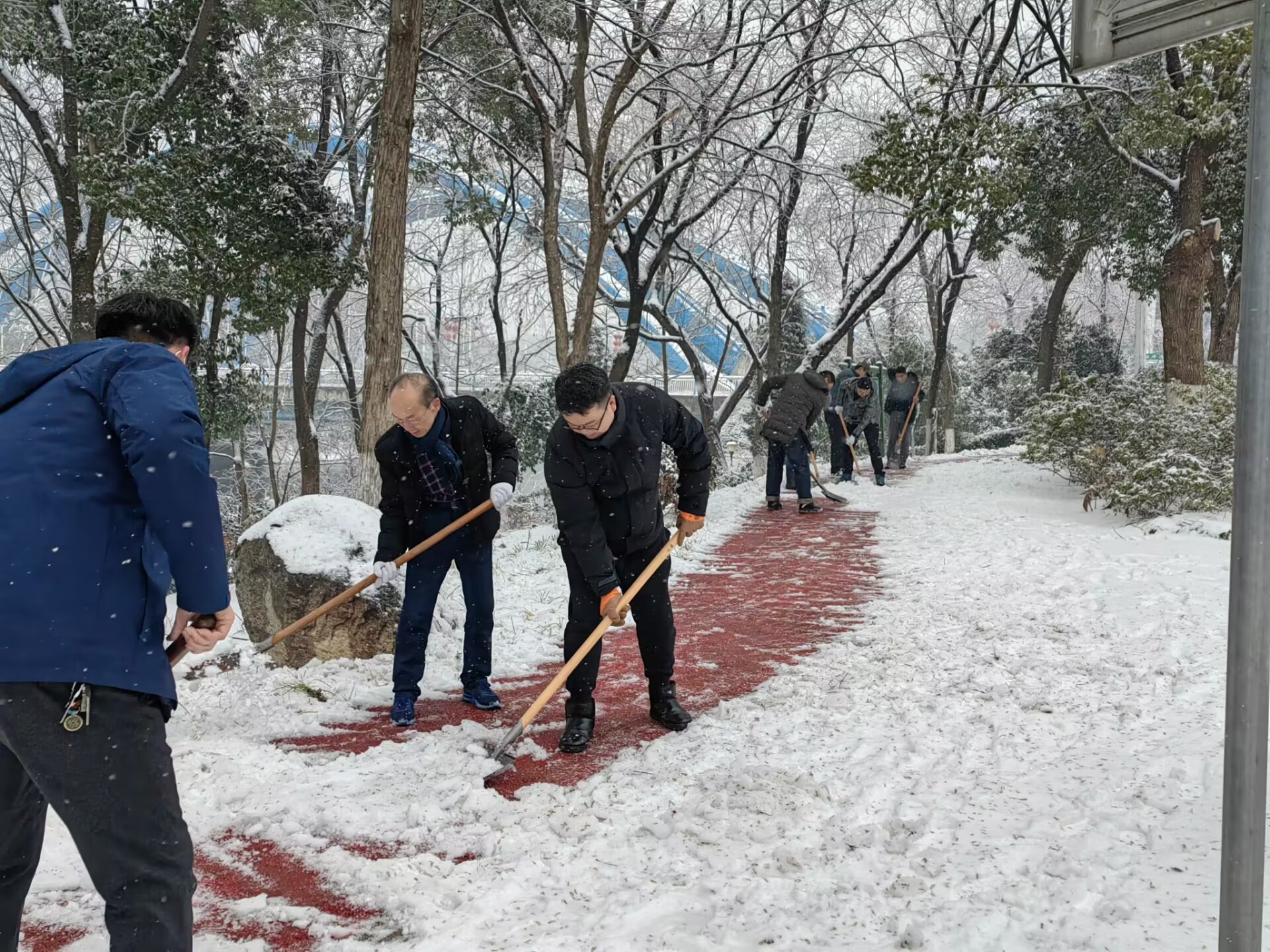下雪是景,除雪是情。最美的不是瑞雪纷飞,而是党员志愿者们破冰除雪的画面。此次扫雪除冰行动,不仅为行人清扫出“平安路”“温暖路”,也是学校党员干部用自己最朴素的方式和最诚挚的热情践行初心和使命的生动实践,树立了“一名党员、一面旗帜”的良好形象。