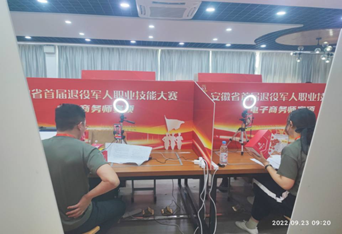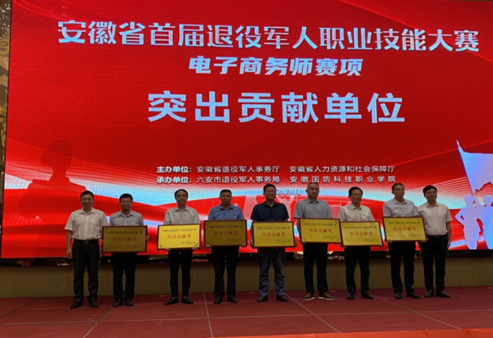9月22日—23日,由安徽省退役军人事务厅、安徽省人力资源和社会保障厅主办,六安市退役军人事务局和beat365承办的安徽省首届退役军人职业技能大赛“电子商务师”赛项在经贸管理学院实训中心成功举行。来自全省各地市的16支代表队32名退役军人选手参加了此次比赛,beat365被评为“突出贡献单位”。