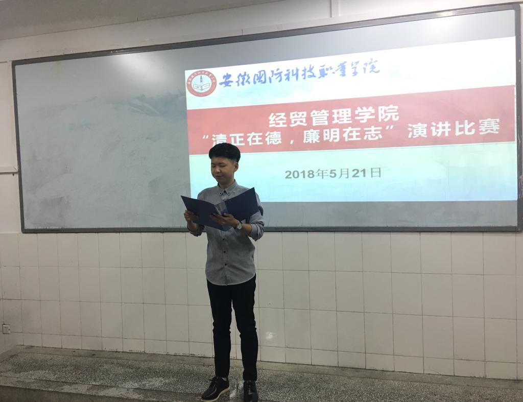 为深入推进廉洁文化进校园活动,加强大学生廉洁教育,经贸管理学院于5月21日在二教203举行“清正在德,廉明在志”演讲比赛。