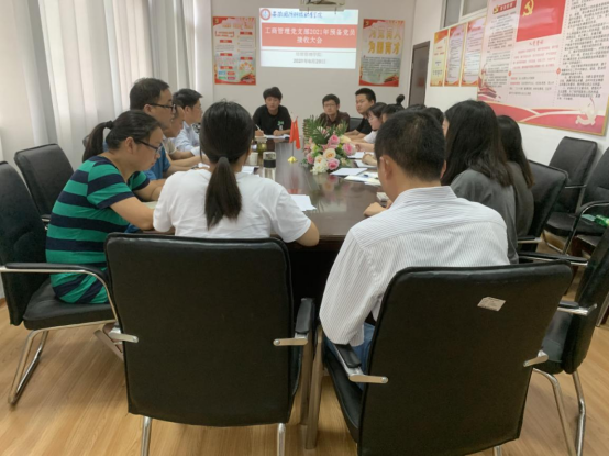 在隆重庆祝中国共产党成立100周年之际,各方面先进分子踊跃申请入党,学生党员发展有条不紊的按照标准流程开展。6月29日下午,经贸管理学院工商管理党支部在知行楼204隆重召开2021年预备党员接收大会。该会由经贸管理学院工商管理党支部书记杨力同志主持,参会人员包括经贸管理学院工商管理党支部党员9名、发展对象7名。