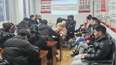 为了增进师生间的相互了解,提高教育教学水平,完善教学过程的规范化管理,经贸管理学院于12月18日下午分别在知行楼204和实训楼403会议室召开了2024-2025学年第一学期师生座谈会。会议由经贸管理学院党总支书记刘峰和院长杨力主持,教研室主任、专业带头人、部分专业教师以及23、24级学生代表参加了此次座谈会。