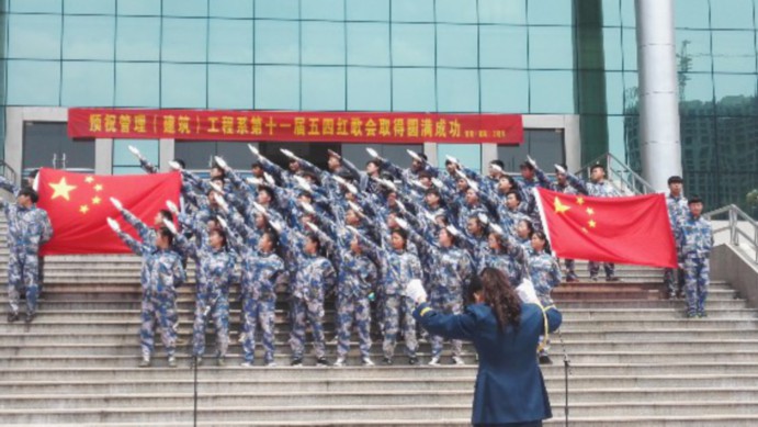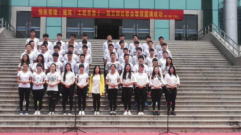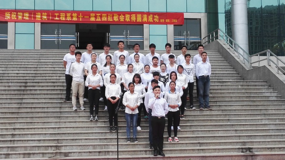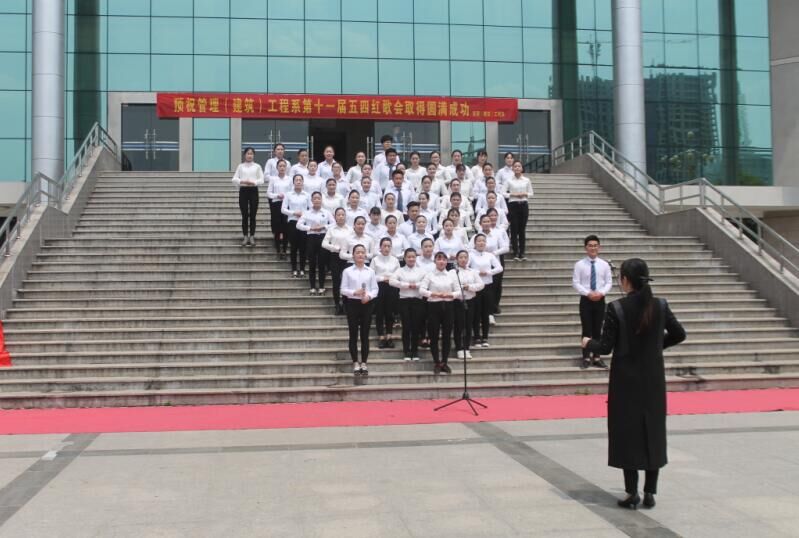 日,管理(建筑)工程系五四红歌会在图书馆门前嘹亮开唱。系党总支书记杜先扬、副书记杨力、团总支书记李文君及各年级辅导员担任评委,