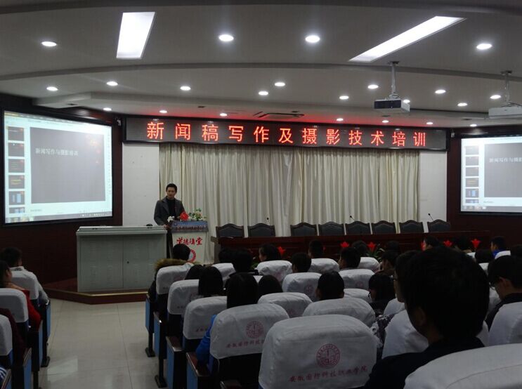 在“新闻稿写作及摄影技术培训”专题中,管理(建筑)工程系丁辉老师分别从“新闻稿写作”“摄影技巧”两个方面进行了详细的分解讲述,强调了新闻稿的六要素以及四个特征、照片拍摄的角度,并用实例指出了以往新闻稿写作与照片的不足,希望广大学生干部能够及时改正。