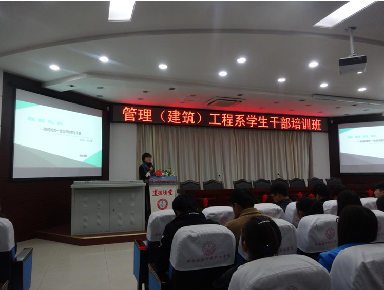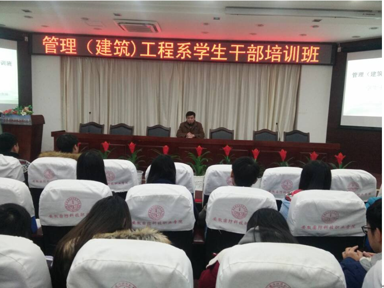 为加强我系学生干部队伍建设,提高学生干部的综合素养和工作能力,在学生干部中营造积极向上的氛围,12月8日,由管理(建筑)工程系团总支举办的2015年学生干部培训在图书馆报告厅落下帷幕。15级各班级班干、社团主要干部、团总支、学生会全体成员参加培训。本次学生干部培训先后开展了“如何做一名高素质学生干部”、“与信仰对话”、“军工魂——学院文化传统教育”“学生干部处理大学生突发事件与危机管理”“团学活动的组织与策划”“新闻稿写作及摄影技术培训”“学生干部分享交流”七个专题。