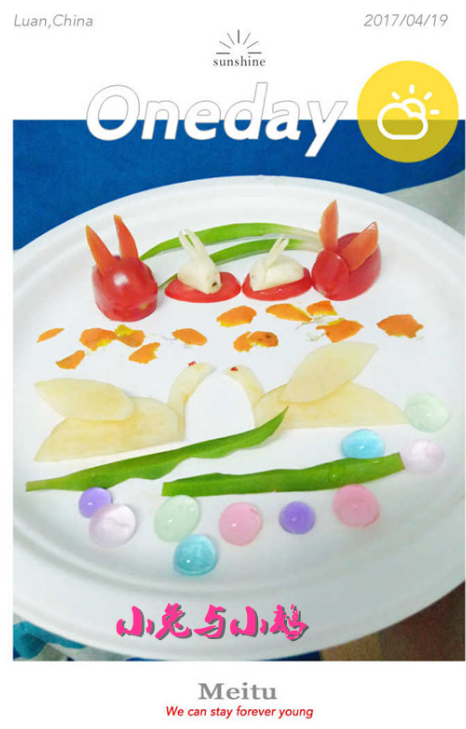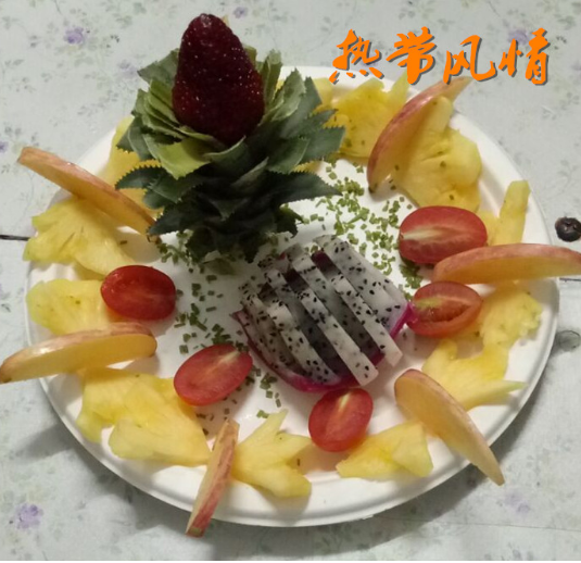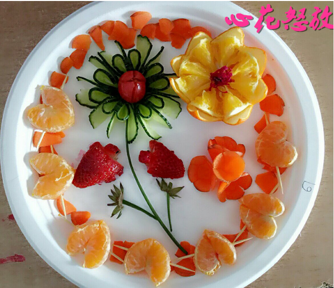 在水果拼盘大赛中,学生们用各式水果、蔬菜,经过创意和精细雕琢,制作出一盘盘色彩艳丽、造型别致的水果拼盘,吸引众多学生驻足观看。