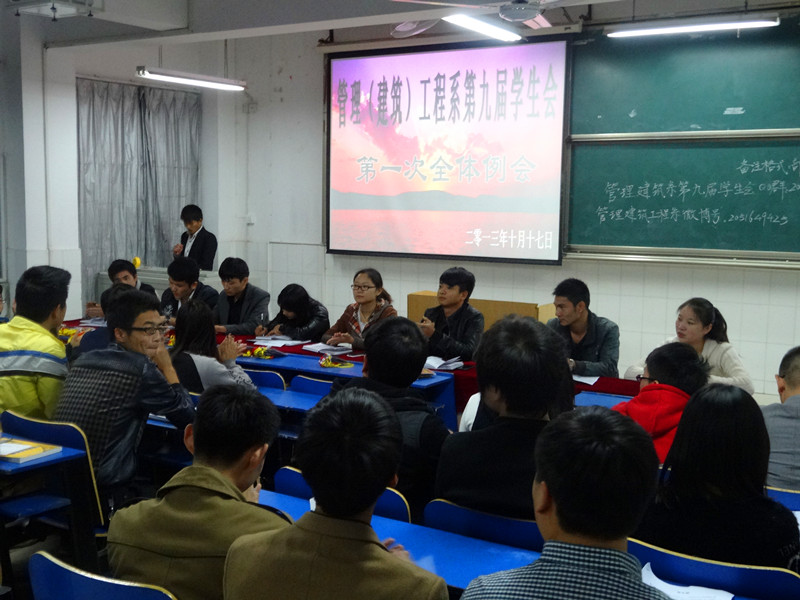 10月17日下午,管理(建筑)工程系学生会在2教105召开管理(建筑)工程系学生会第一次全体例会。系团总支书记李文君出席会议,学生会全体学生干部参加本次会议。会议由学习部刘双成主持。