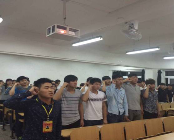 讲座结束,全体受助学生在学生代表的带领下庄严宣誓。