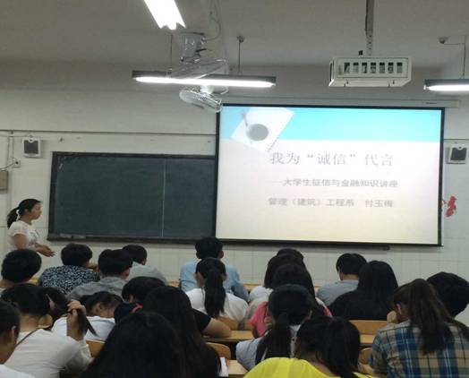为普及国家关于大学生资助制度及征信知识,5月26日,我系资助老师付玉梅在1#211教室开展了主题为“我为‘诚信’代言”----大学生征信与金融知识讲座,共有全系在校生约120位同学参加本次活动,本次讲座共从我国征信基本知识、助学贷款基本知识及其他注意事项等三个方面跟同学们进行了耐心细致的讲解,现场气氛热烈,同学们聚精会神的听讲,付老师现场一一解答了在场学生关于助学贷款相关的问题。