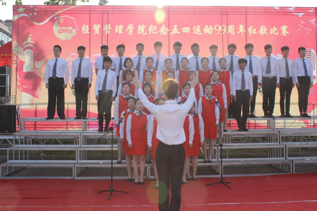 为纪念五四爱国运动99周年,加强广大师生思想道德建设,弘扬中华民族优秀传统文化,充分发挥校园文化的思想熏陶功能。经贸管理学院于2018年4月18日下午在校风雨操场举办“永远跟党走 唱响新时代”五四红歌会。院党总支书记杜先扬、副书记刘峰、副院长杨学分,团总支书记付玉梅、交通运输学院招生就业办主任江洪流,交通运输学院学工部吴文斌出席此次活动,各位辅导员、班主任应邀观赛。